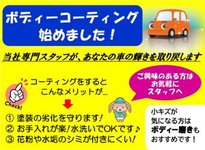 車の大きさ、状態によって、施工代が異なります